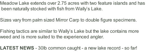 We are limiting spaces on the lakes to four swims on Wally’s and six on Meadow. These will need to be STRICTLY BOOKED IN ADVANCE by calling 07340 736977 or emailing fishing@weymouthcamping.com. We will not be allowing fishermen to simply turn up and booking will be on a first come, first served basis.